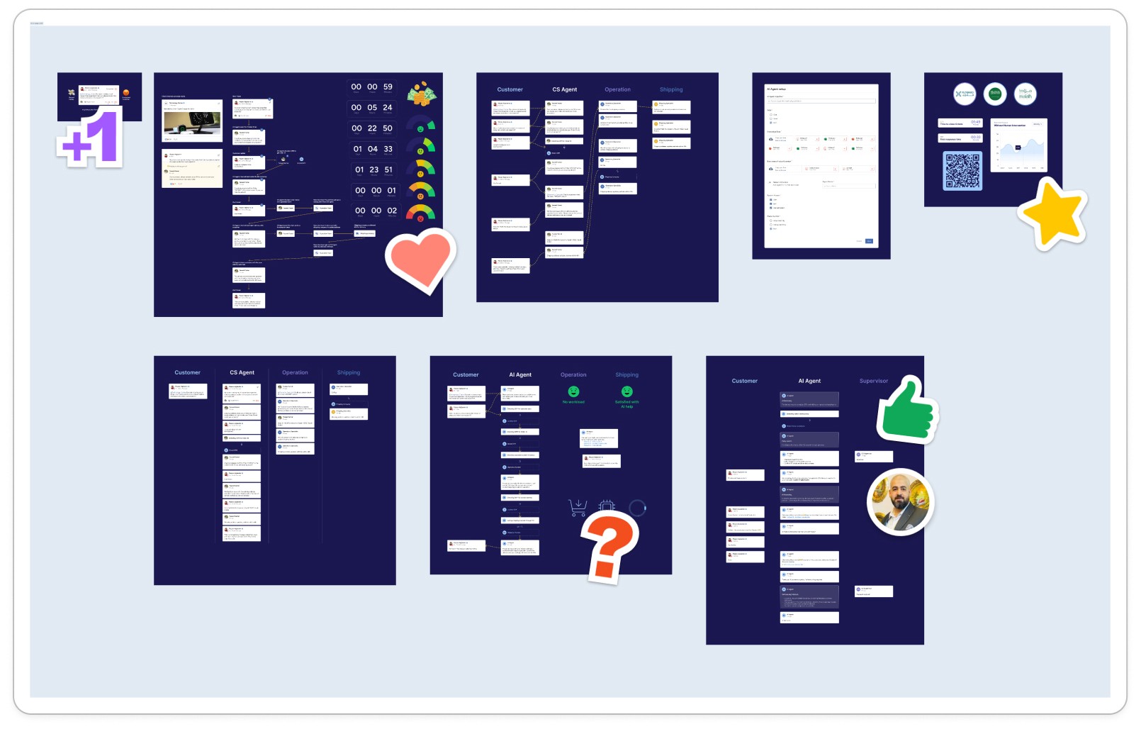What you see here is the human side of the product. Early concepts. UX explorations. Retrospectives. Design systems taking shape. Work in progress, not polished plates.